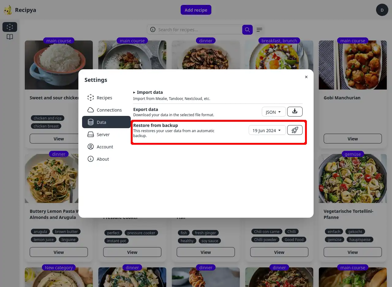 path/to/recipya/data/*with the one from the unzipped backup - If applicable, delete