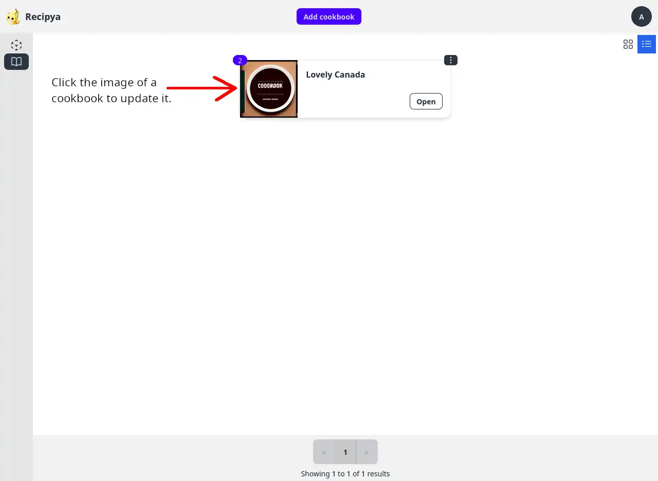 Click the image of a cookbook to update it. You will be then prompted with the operating system’s file picker to select and image.